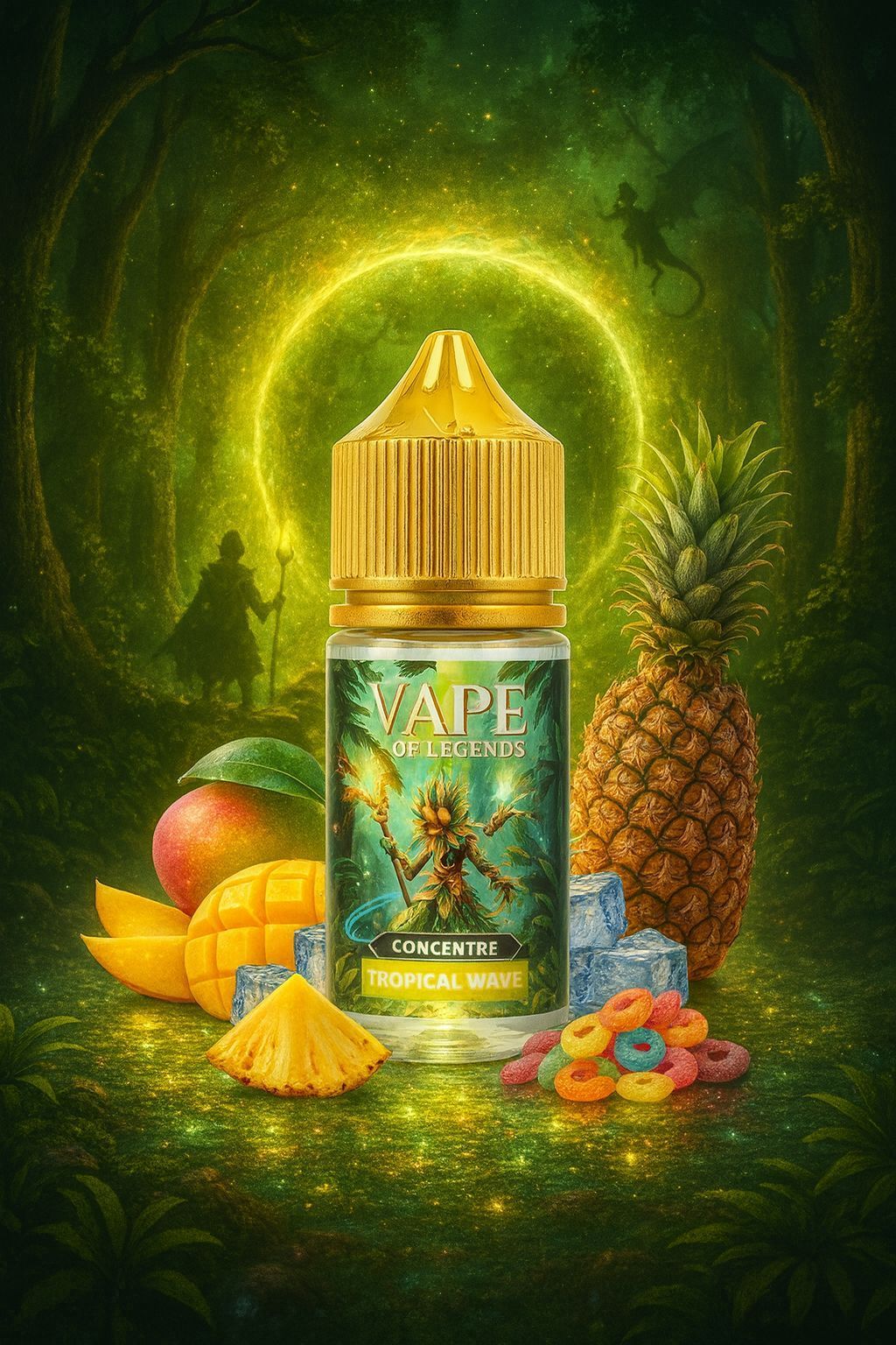 Mangue, ananas, fruits tropicaux, touche de bonbon sucré